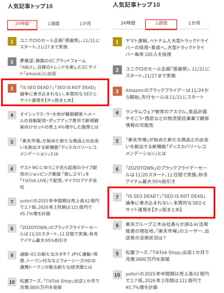11月18日に公開された本記事は11月22日付けのデイリーランキングで3位、週間ランキングで7位をいただきました。たくさんの方々に読んでいただけてとても嬉しいです。